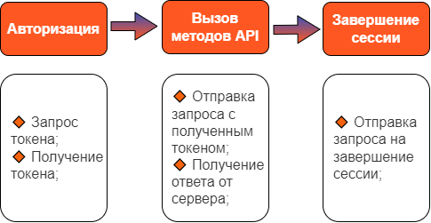 | Токен (JWT) | JSON Web Token. Текстовый ключ, который на время дает возможность вызвать методы API от имени получившего этот ключ пользователя. “Срок жизни” токена равен 60 минутам. |